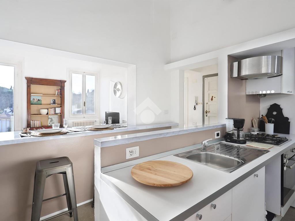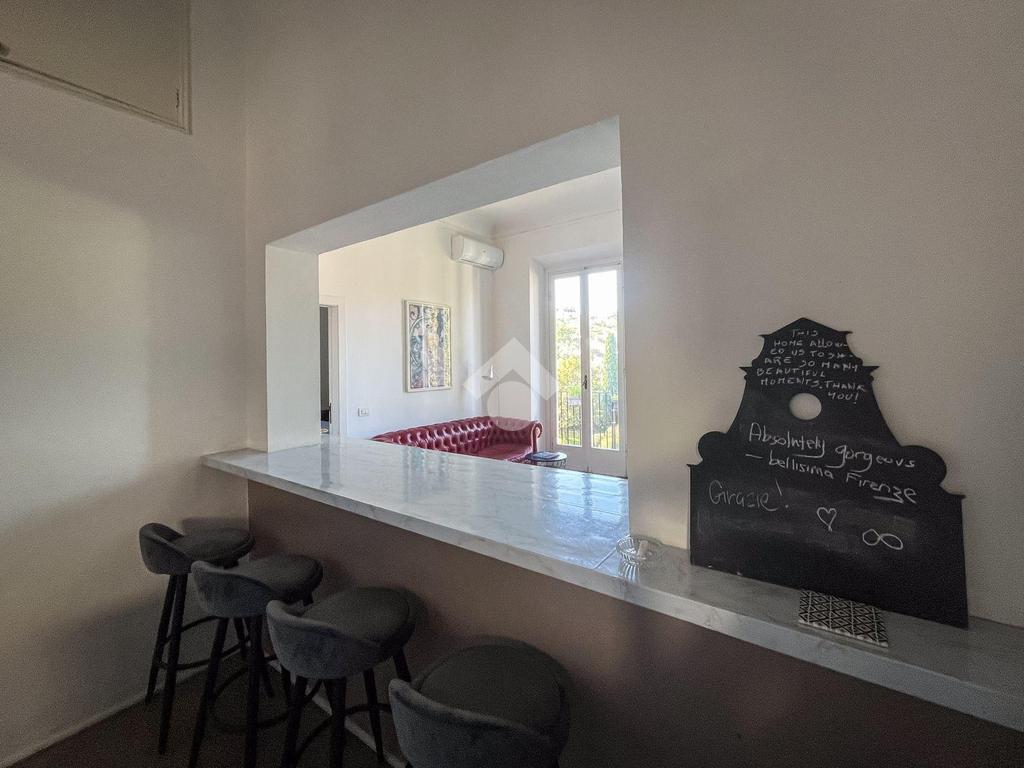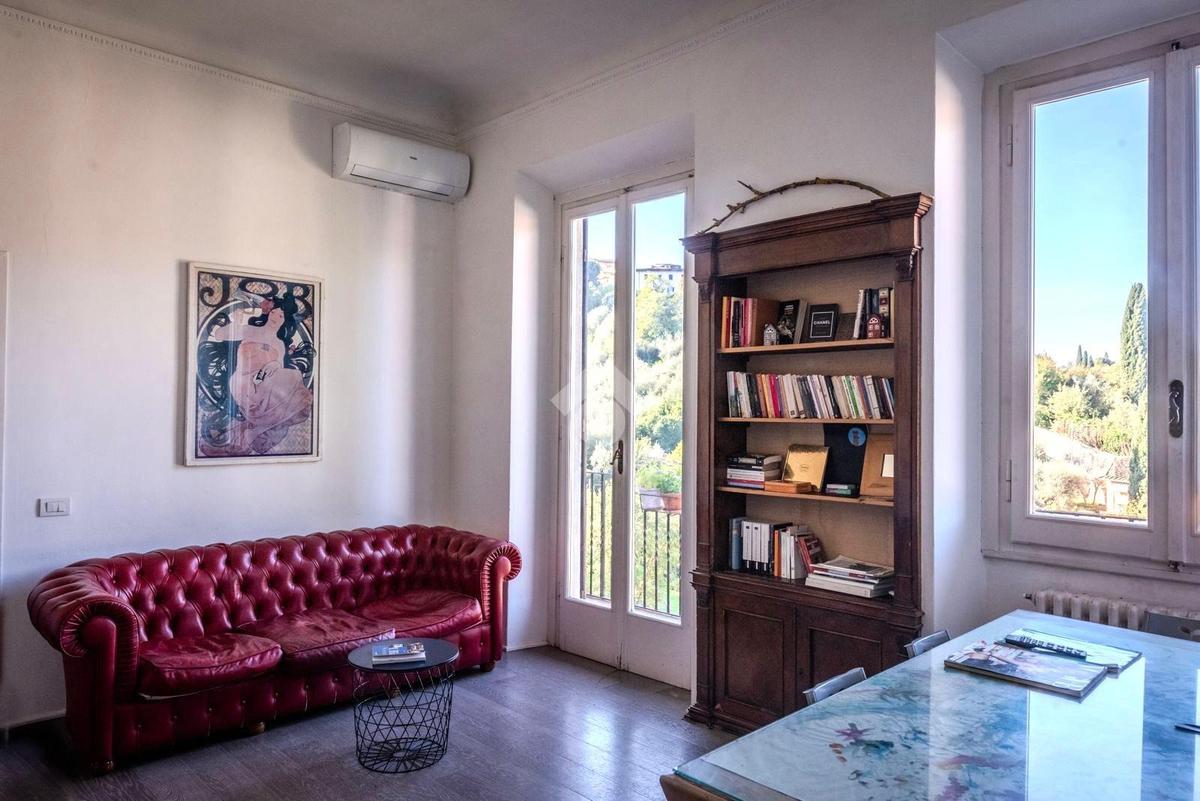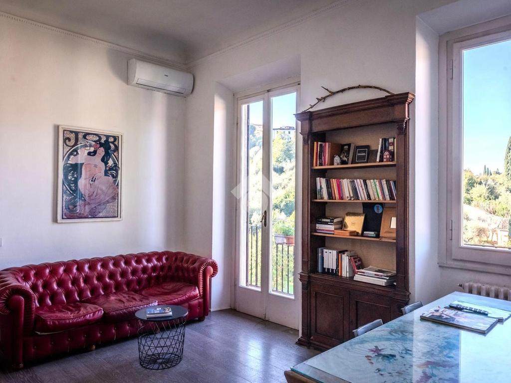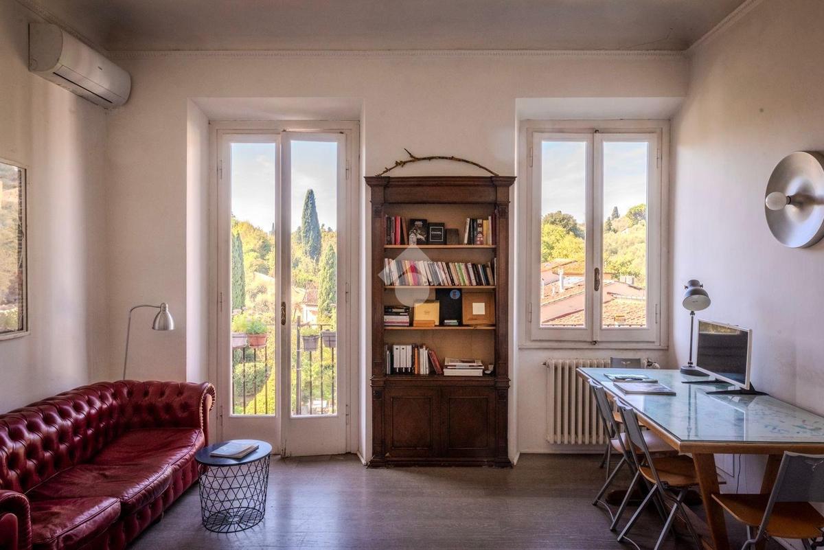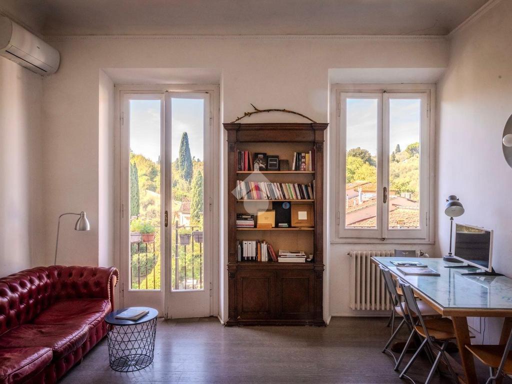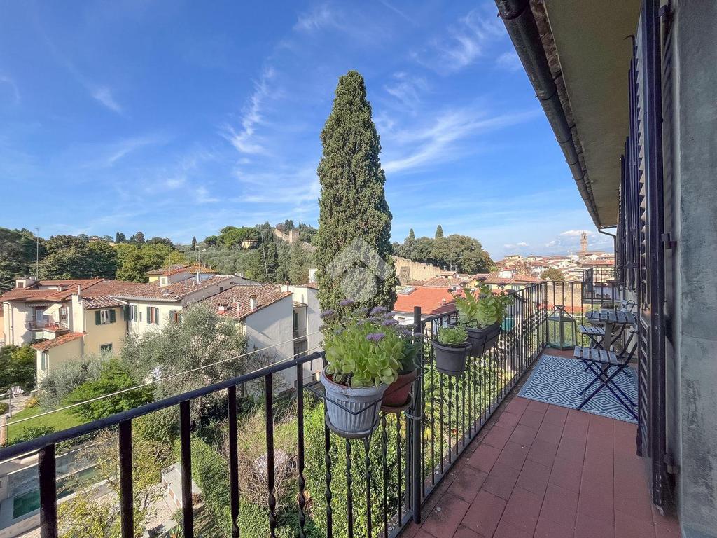 SAN NICCOLO' A soli 600 metri da Piazzale Michelangelo, in una delle zone più prestigiose e suggestive di Firenze, in bel palazzo del 1600, in contesto elegante, luminoso appartamento immerso nel verde a pochi passi dal Centro Storico con splendida vista sui monumenti e su Palazzo Vecchio. Si tratta di un quadrilocale situato al secondo e ultimo piano, composto da ingresso, sala, cucina e balcone con ampia vista panoramica, due camere, bagno finestrato. L’appartamento si caratterizza per l’ottima esposizione sud-ovest che conferisce un’eccellente luminosità, mentre la suddivisione degli spazi risulta funzionale e ben distribuita, in perfetta armonia con l’atmosfera estremamente silenziosa e tranquilla. Dal balcone, a cui si accede dalla zona giorno, è possibile ammirare Palazzo Vecchio, San Miniato e le colline circostanti. Riscaldamento autonomo ed impianto di climatizzazione.