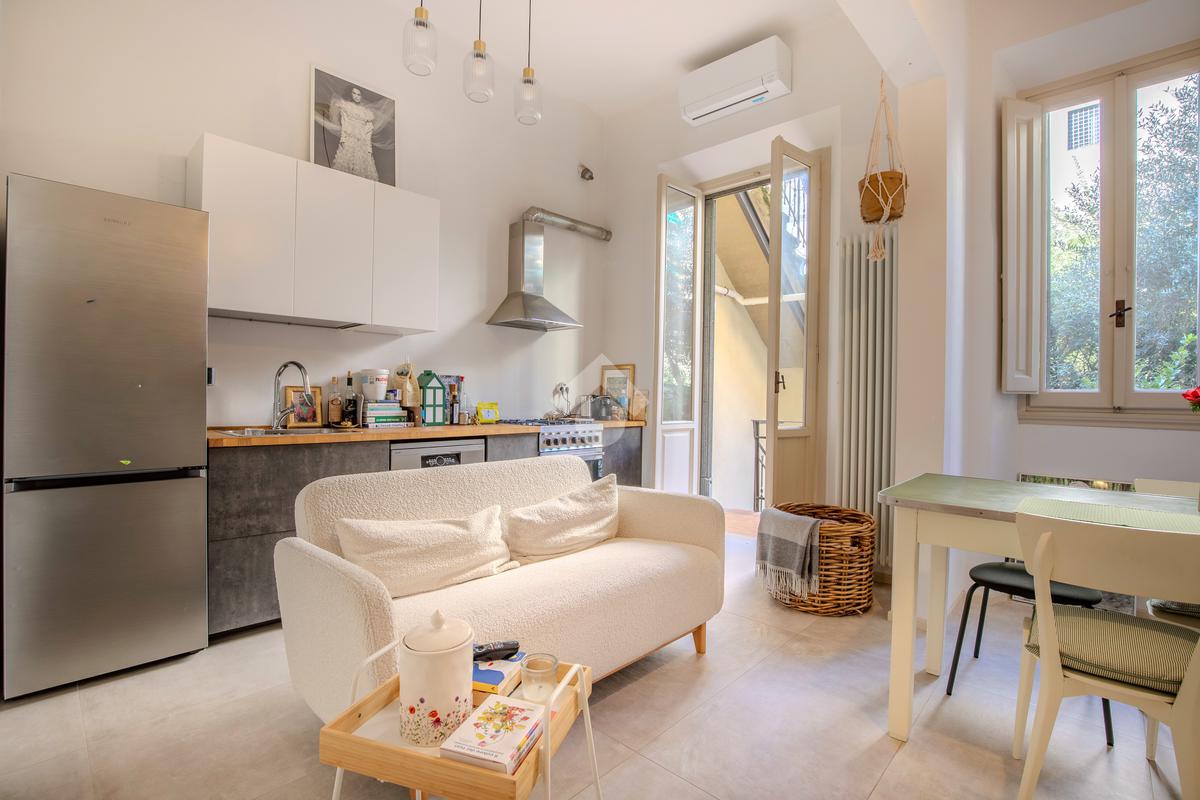VIA VILLARI – Nelle immediate vicinanze di Via Gioberti, in elegante palazzina dei primi anni ’900 composta da sole tre unità immobiliari, appartamento completamente ristrutturato con giardino privato. L’immobile, situato al piano terreno, è composto da ingresso-disimpegno, luminoso soggiorno con angolo cottura e accesso diretto al giardino, due camere di cui una spaziosa matrimoniale ed una seconda camera di medie dimensioni, bagno finestrato e due comodi ripostigli. L’appartamento è stato oggetto di un’importante ed accurata ristrutturazione che ha incluso il rifacimento completo degli impianti, il restauro degli infissi con montaggio di doppi vetri, l’installazione dell’aria condizionata in tutti gli ambienti e di una moderna caldaia a condensazione oltre a finiture eleganti e contemporanee, mettendo in risalto e rispettando al tempo stesso il fascino dell’epoca. La cucina è valorizzata da una pratica dispensa e da un funzionale angolo lavanderia. La camera matrimoniale dispone di un utile palco morto piastrellato, mentre nel corridoio è presente un ulteriore ripostiglio a doppio volume con predisposizione per la lavatrice. Il giardino privato, accessibile tramite un ampio balcone e scala in pietra, affaccia sull’interno garantendo riservatezza e silenzio, contesto ideale per trascorrere piacevoli momenti conviviali e di relax. Il giardino è inoltre dotato di due comodi ripostigli perfetti per riporre oggetti di utilità ed arredi da esterno. Le condizioni generali dello stabile sono ottime e le spese condominiali risultano particolarmente contenute.